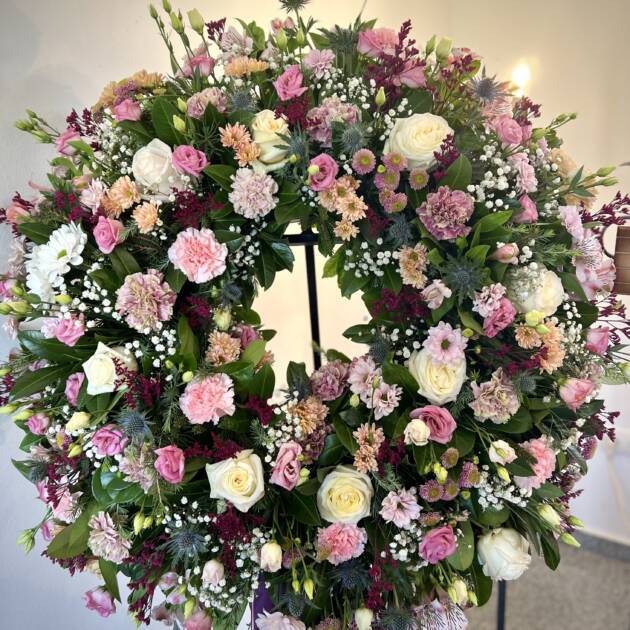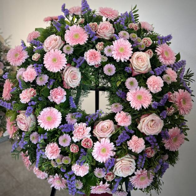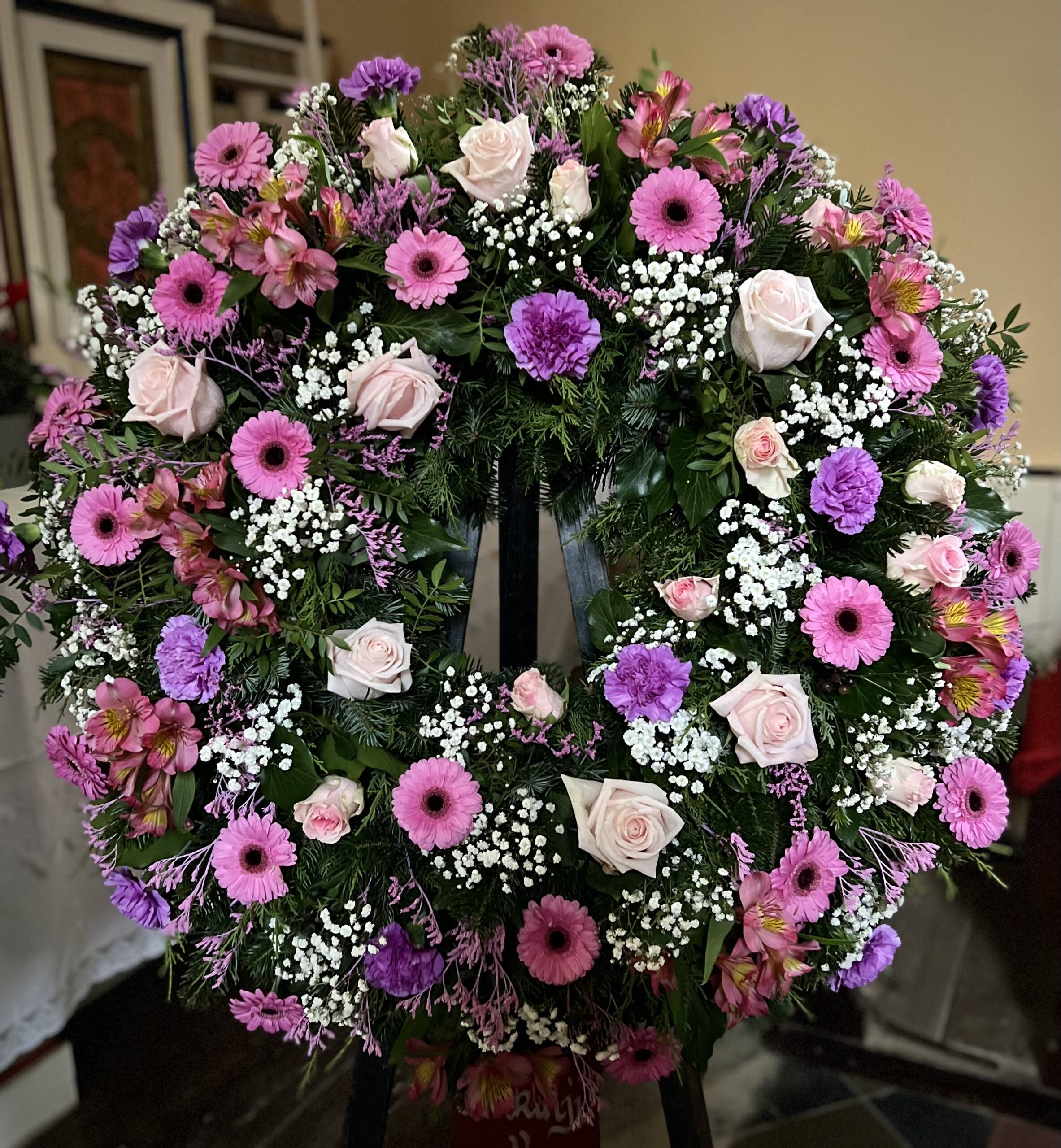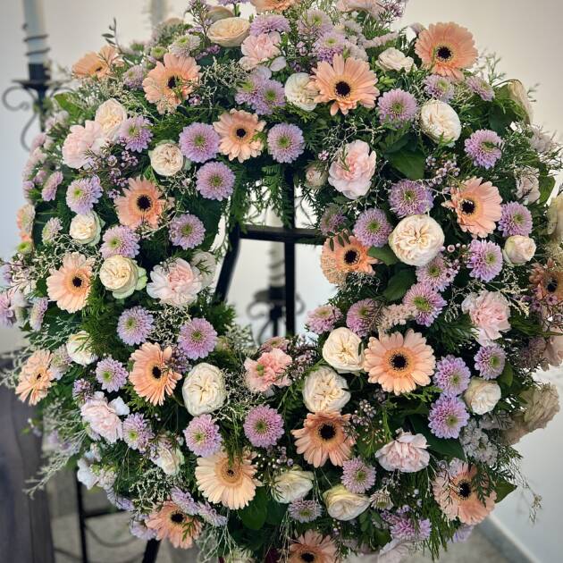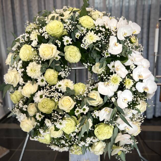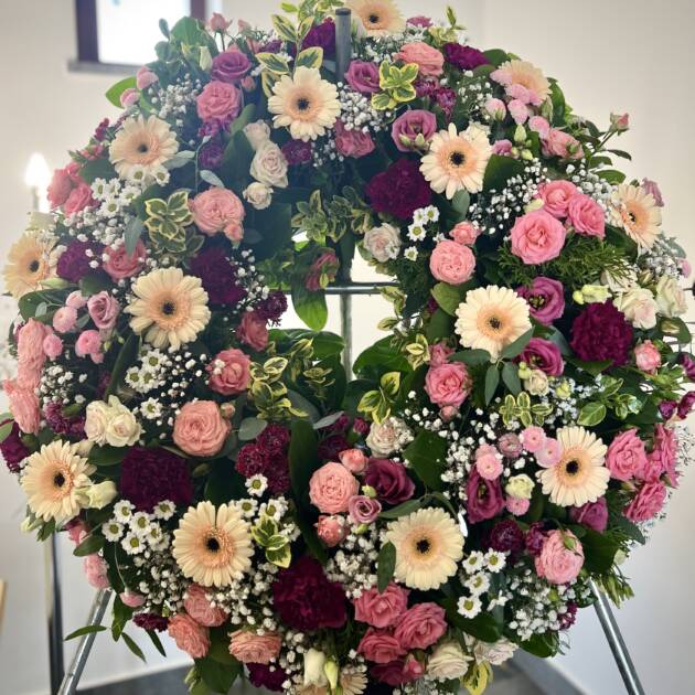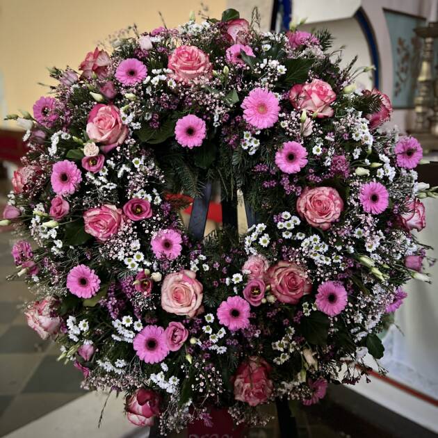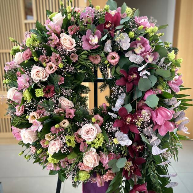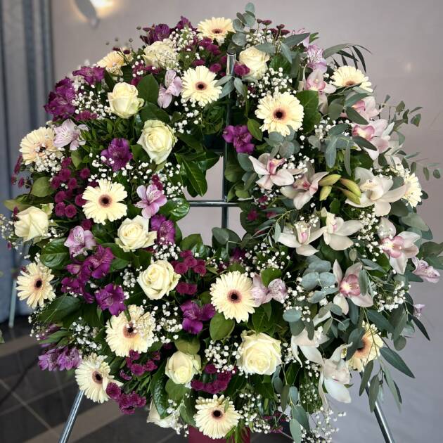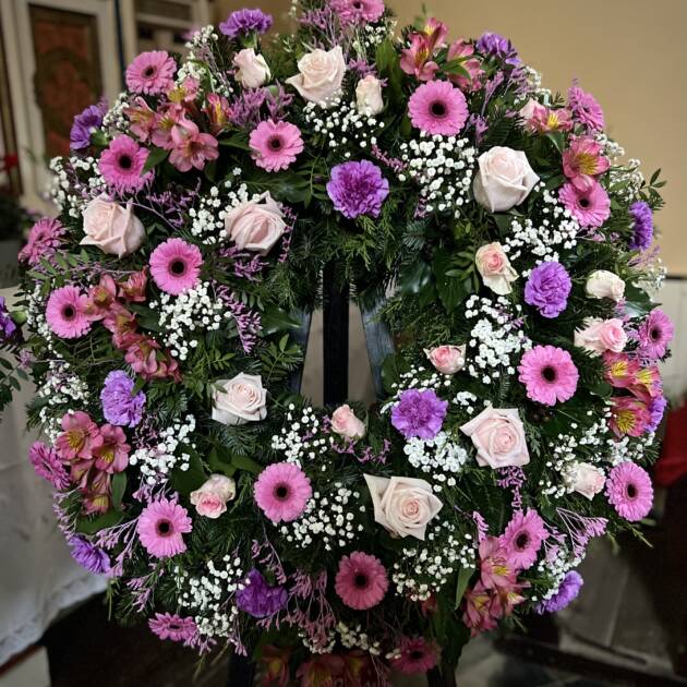 Bidermajer venci iz čudovitega cvetja za zadnje slovo.