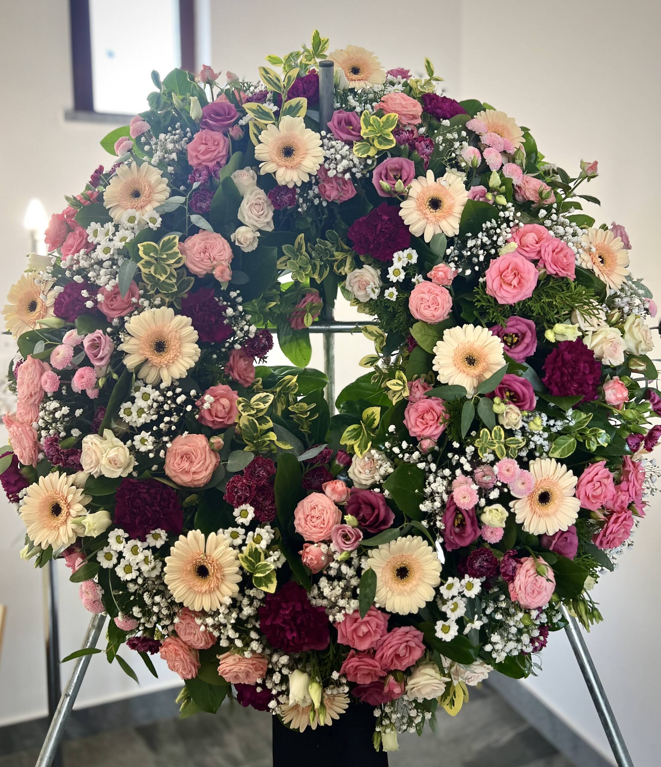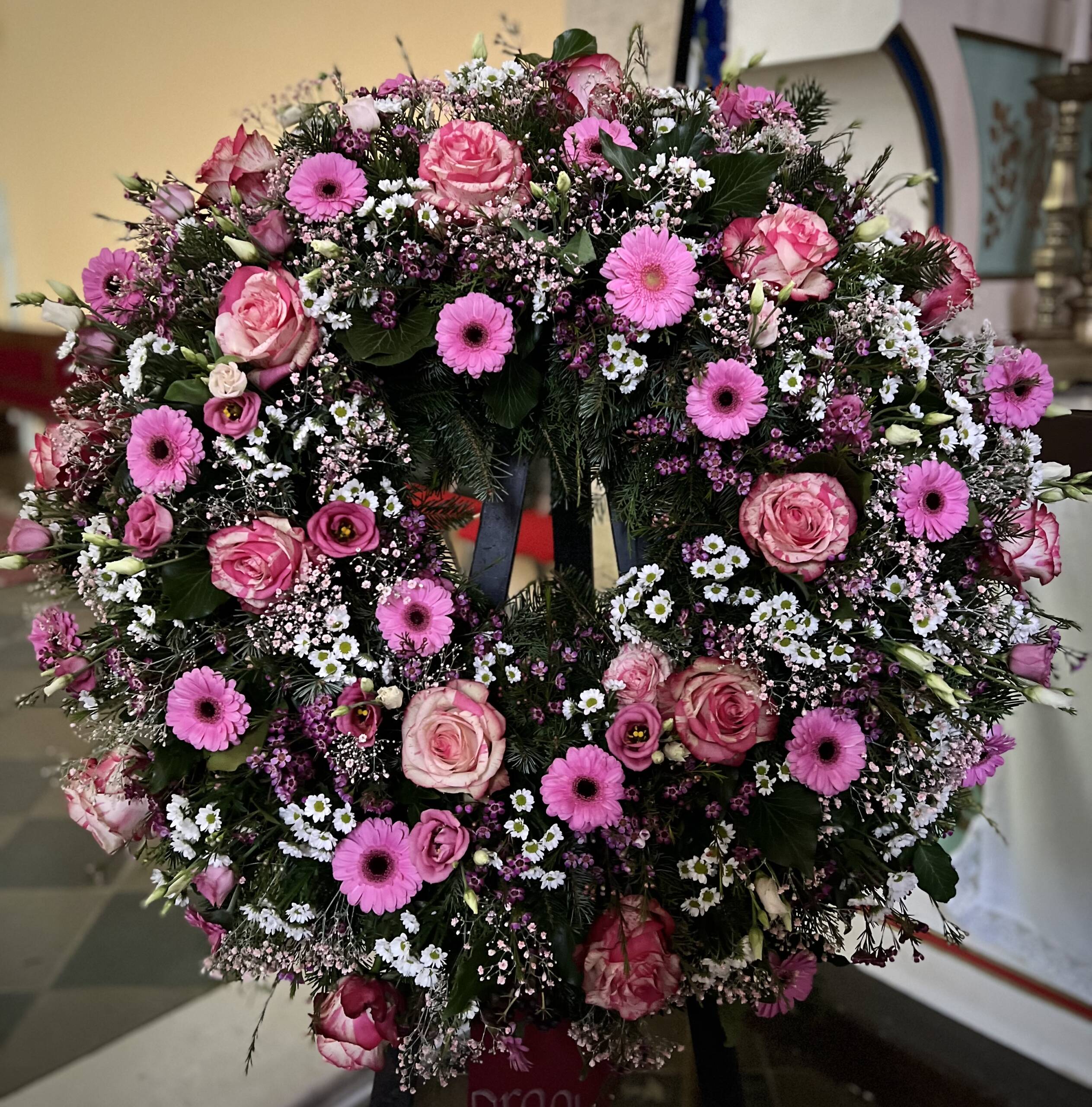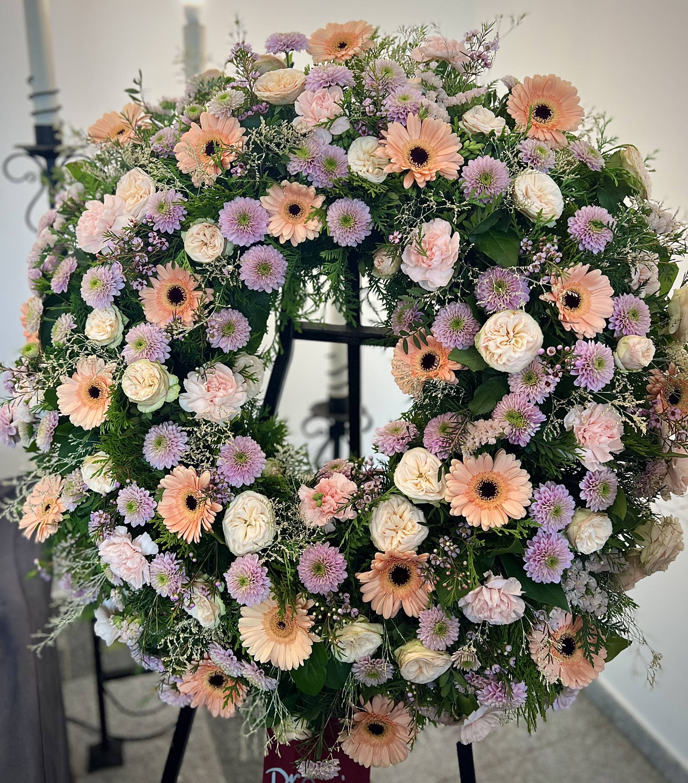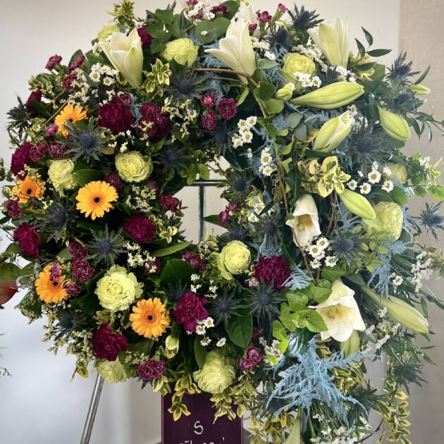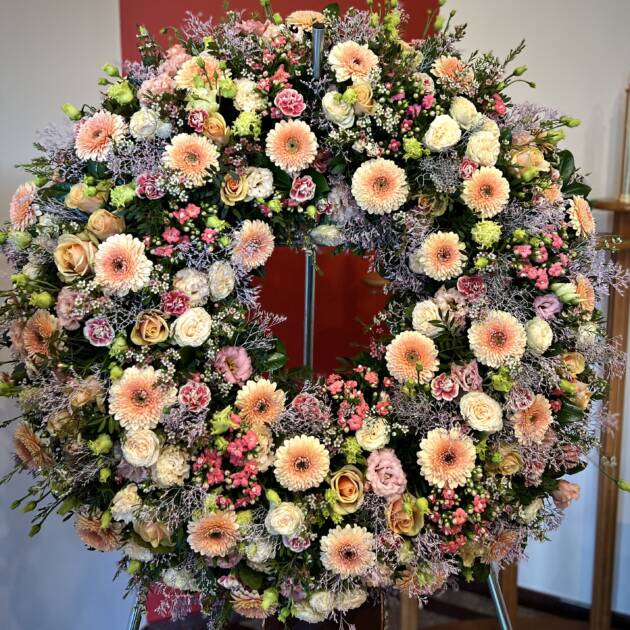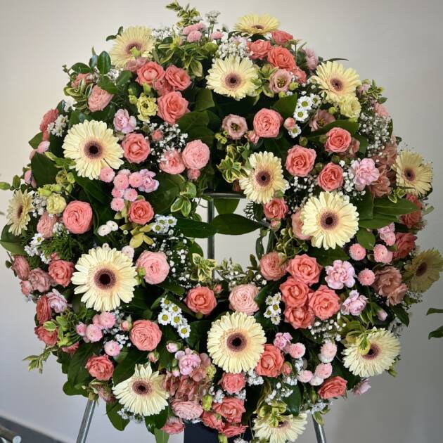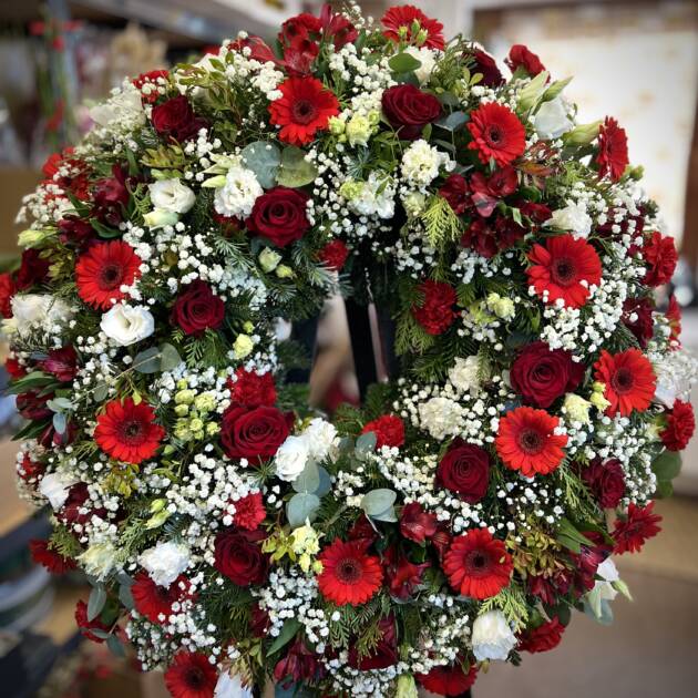 Bidermajer venci iz čudovitega cvetja za zadnje slovo.